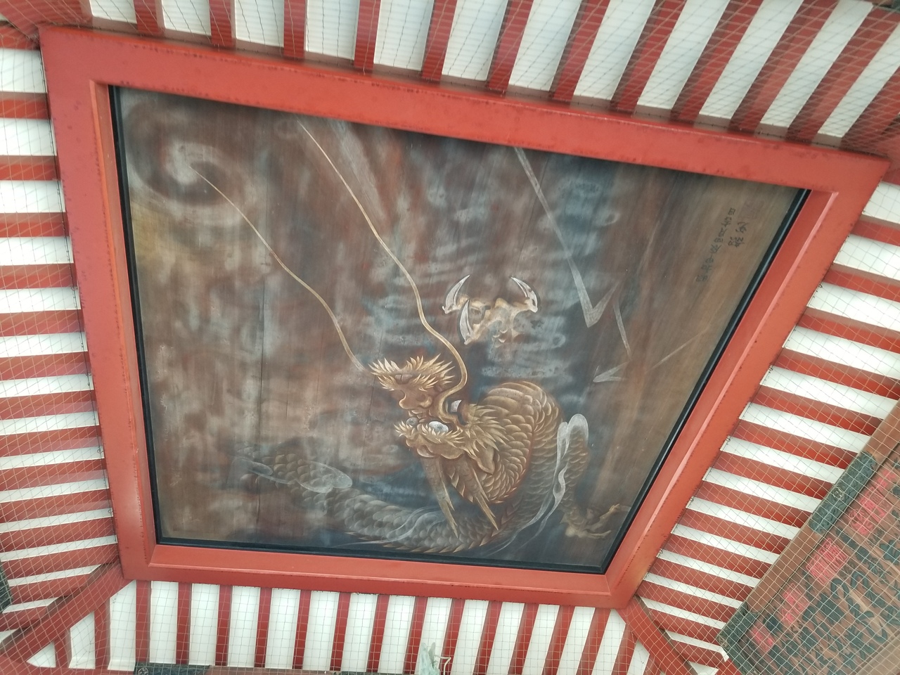 お水舎の天井には 墨絵の龍東 韶光 画、手水舎の真ん中に背の高い立派な像が建っているのは高村光雲作の龍神像、沙竭羅龍王の像だ。