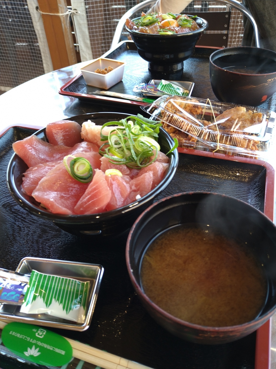 市場内にも丼ぶり、寿司などいくつか店舗があり、フードコートのように、自由に席を取るスタイルでした。