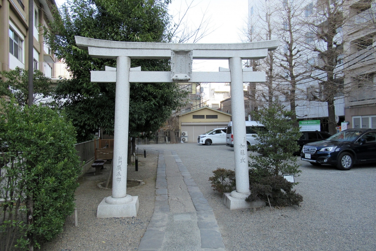 浅草神社の本殿右手にあった鳥居を入ると、そこが「被官稲荷神社」でした。たまたま江戸っ子の雰囲気を漂わせたお母さんが手を合わせておられたのですが、お母さんが帰られた後にプレートの文字を読むと、何と新門辰五郎さんに縁深い神社であることが分かりました。新門辰五郎さんといえば幕末から明治にかけて生きた伝説の任侠、何度も芝居やテレビのモデルになった人物ですから、ちょっとミーハー気分になりました。お社前に鳥居が建ち並ぶ独特な姿、その鳥居に刻まれた新門辰五郎さんの名、そしてあのお母さんの雰囲気と辰五郎さんの江戸っ子つながりに思わず笑みがこぼれてしまいました。