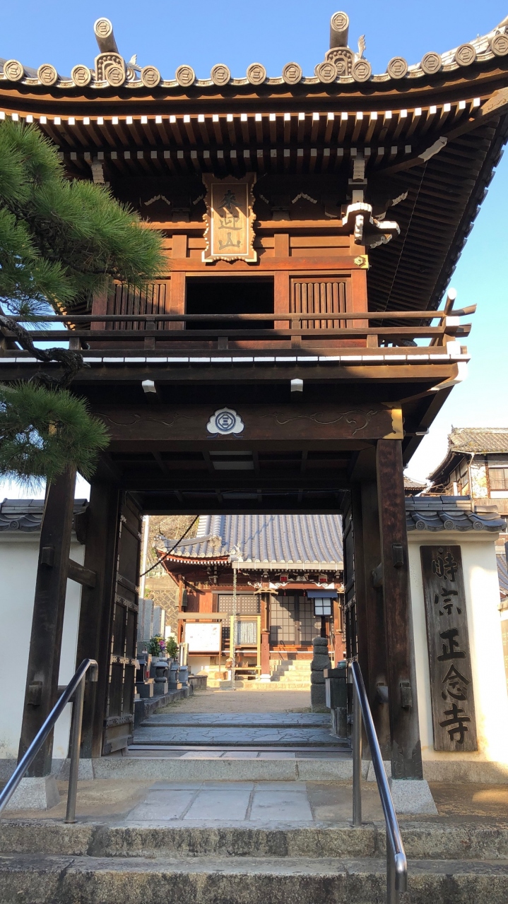 尾道市には、国道2号線に沿って、多くの寺があります。しかし、こちら正念寺は、国道2号線・防地口交差点から北西へ外れたところにあり、静かな境内です。地元の方が、散歩やウォーキングをしていました。時宗の寺で、入口の縦長の門が印象的です。