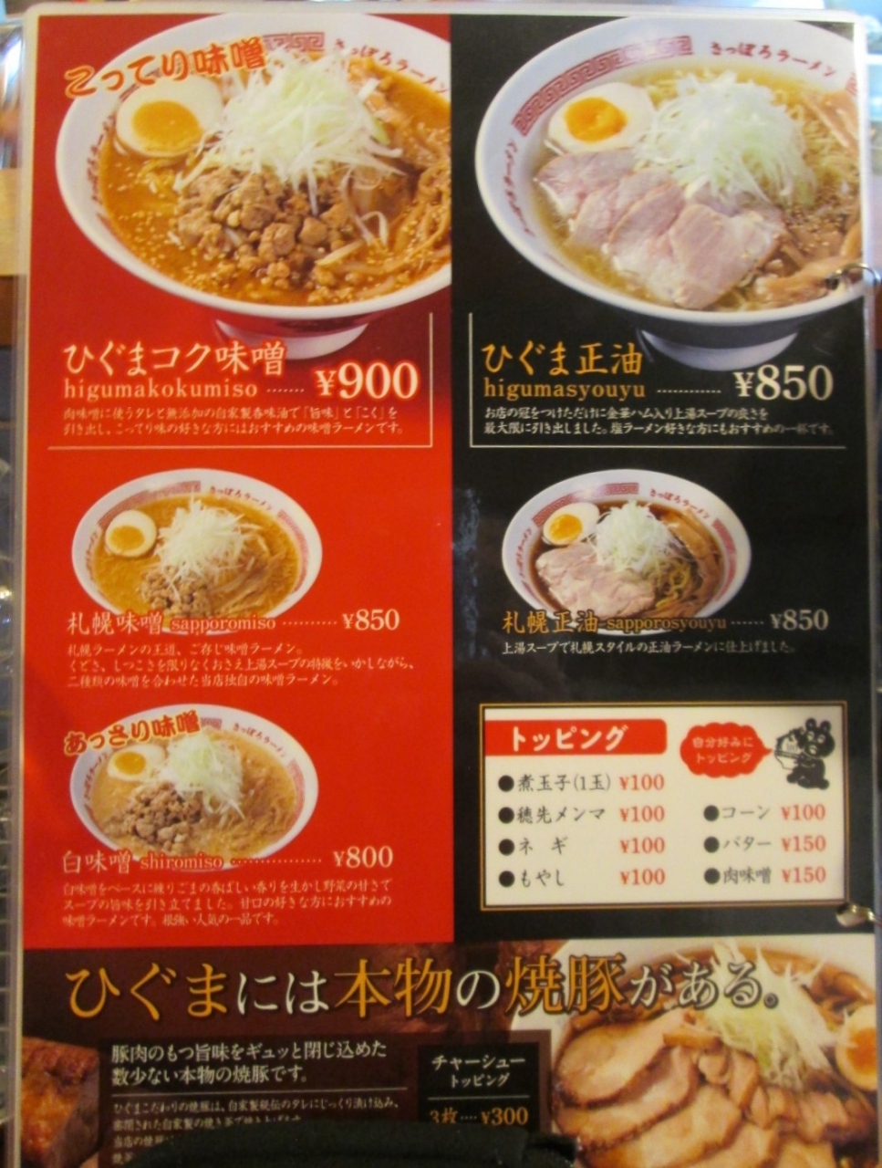 メニューには「ひぐまコク味噌」と「ひぐま正油」がウリのようで、「上湯スープの良さを最大限に引き出した」という説明に惹かれて「ひぐま正油」850円を注文。