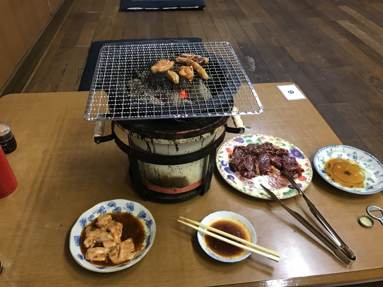 床に座って七輪という珍しいスタイルですが、それもまた良し。