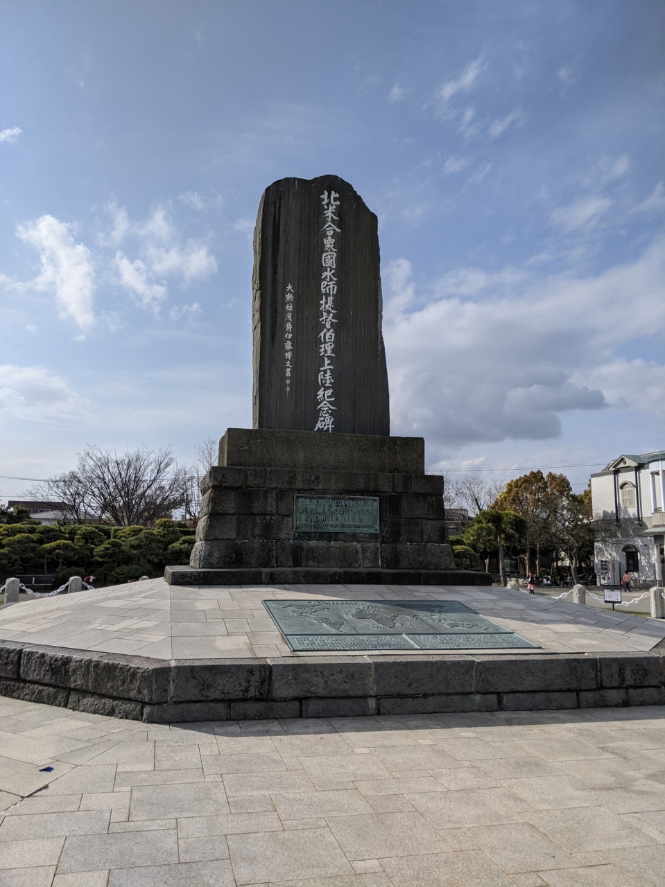 ペリー提督が上陸した久里浜海岸の前にある公園です。公園の中央には、巨大なペリー提督上陸記念碑がありました。また、公園内には、ペリー記念館があり、ペリー提督が来航した時のジオラマ模型や貴重な資料などを観ることができるので、観光スポットとしてもオススメです。