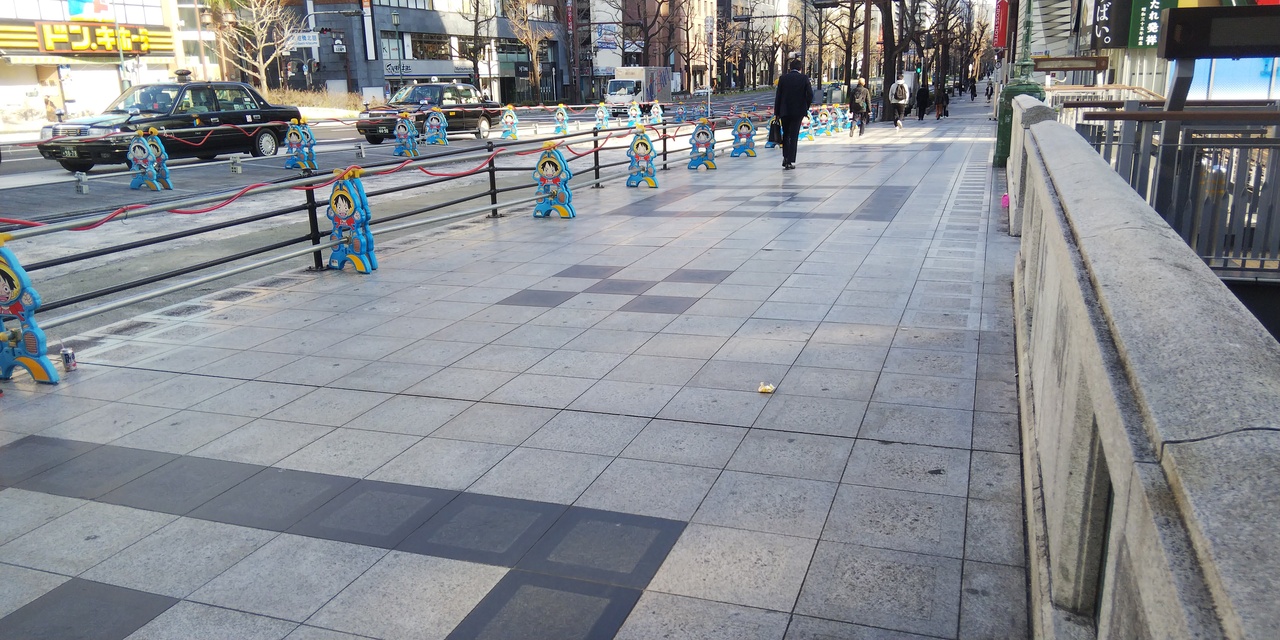 道頓堀橋は道頓堀川にかかる橋のひとつで、幹線道路の御堂筋にかかっています。朝の8時過ぎに行きましたので、通勤のヒトがいらっしゃるぐらいで、ヒトが少なめでした。車道と歩道がわかれていて、歩道も広いのがありがたいです。