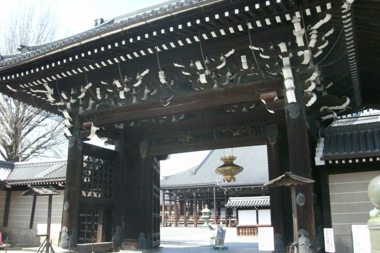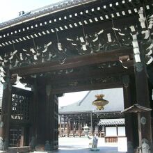 JR京都駅から歩いて20分ほど、西本願寺の堀川通りに面した2か所の門のうち南側のほうにある門で、阿弥陀堂門のような壮麗さはありませんが、荘厳で落ち着きのある門です。門をくぐると正面に御影堂があり壮大さを感じます。この門から堀川通りを渡ると総門があります。