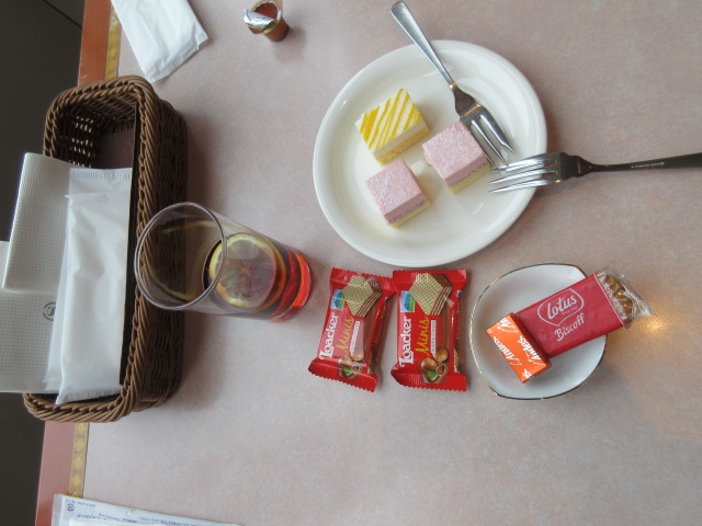 ティータイムは業務用冷凍?のようなミニケーキとお菓子。