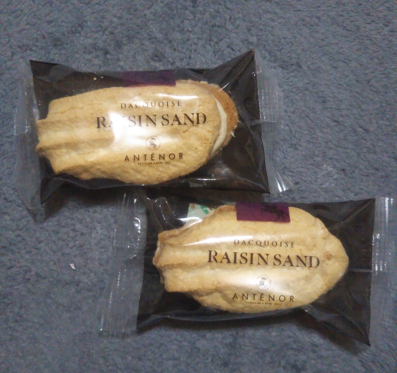 日本橋三越本店にある「アンテノール 日本橋三越本店」にて、「DACQUOISE RAISIN SAND」を購入しました。DACQUOISEなので、通常のRAISIN SANDとは違った食感で、とても美味しかったです。