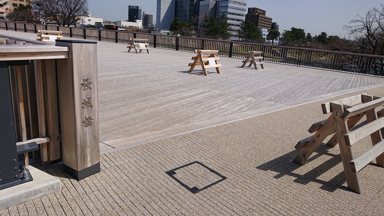 桜城橋と書きますが、よみがなは、「さくらじょうばし」ではありません。正式なよみがなは、「さくらのしろばしさくらのしろばし」です。分かりとも言えますがづらいとも言えますが、お城(岡崎城)が、桜城であると、勘違いされるのを避けるのには、良い名前だと思います。広々とした橋で、気持ちよく渡れました。