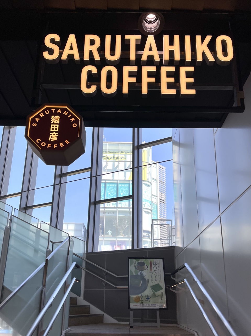 原宿駅改札を出て正面右の階段を上がったところにある猿田彦珈琲のカフェ。入り口は小さいが店内はかなり広い。