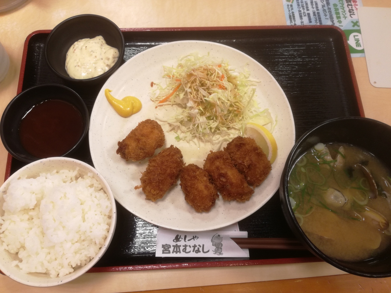 カキフライ定食とオプションであさり汁を注文。1090円でした。
