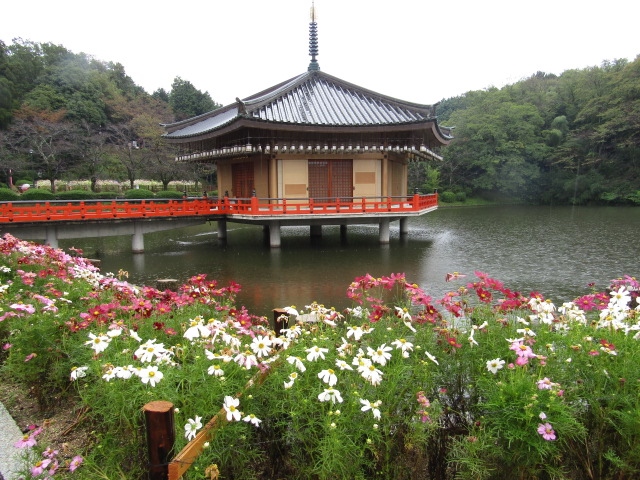 その他にも境内には、文殊池の中央に弁財天や安倍晴明像などが安置されている金閣浮御堂のほか、堂宇や神社、飛鳥時代の古墳などのほかコスモス畑など、見所が多いので時間はたっぷりかかりました。