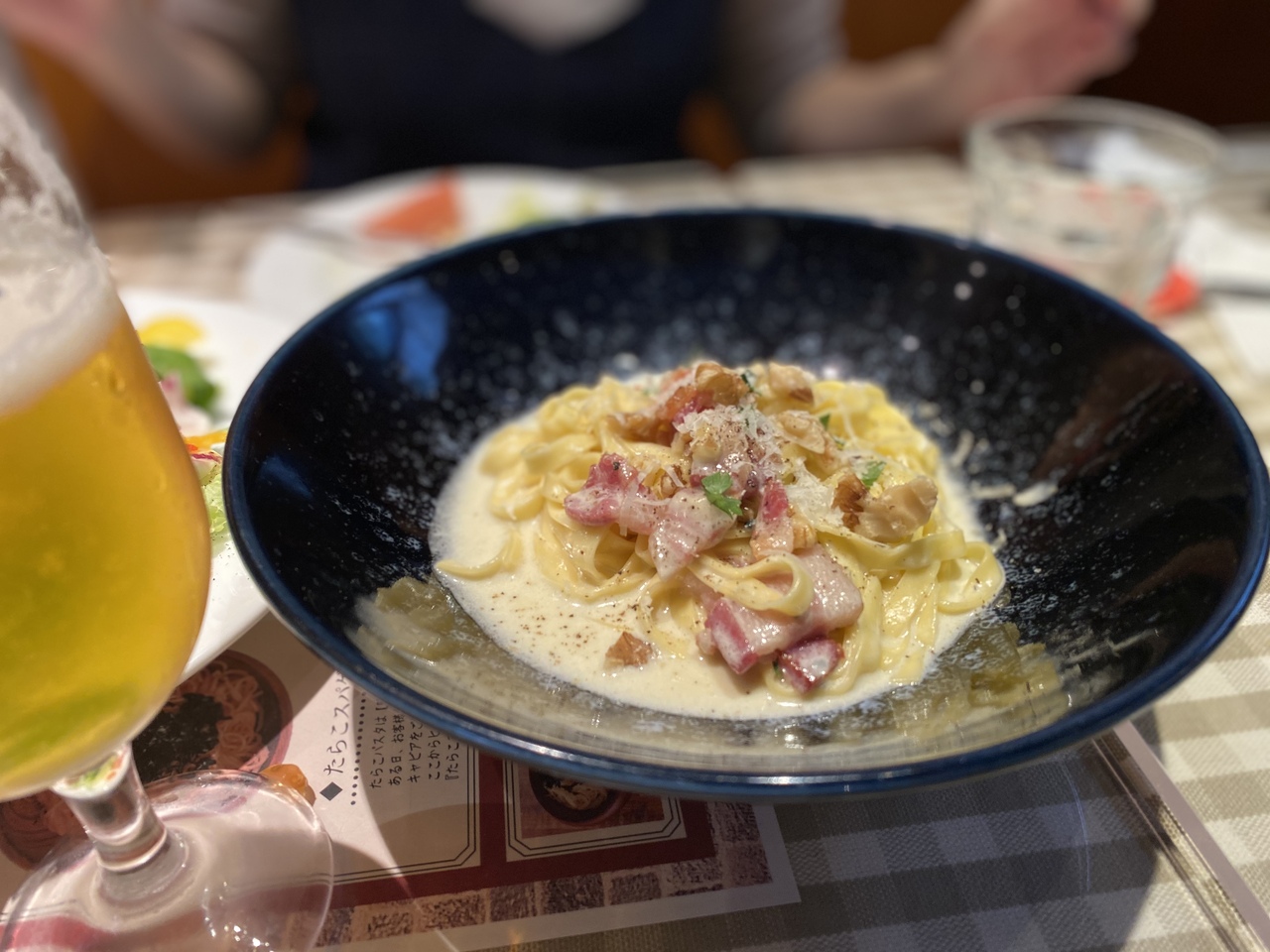 渋谷駅近くにあるスパゲッティの名店です。いわゆる和風パスタを広めたお店と言われています。たらこスパが有名ですが、妻が苦手なのでチーズ系のクリームパスタと醤油パスタを注文。どちらも美味でしたが前者に軍配!名店たる所以を舌と雰囲気で感じました。
