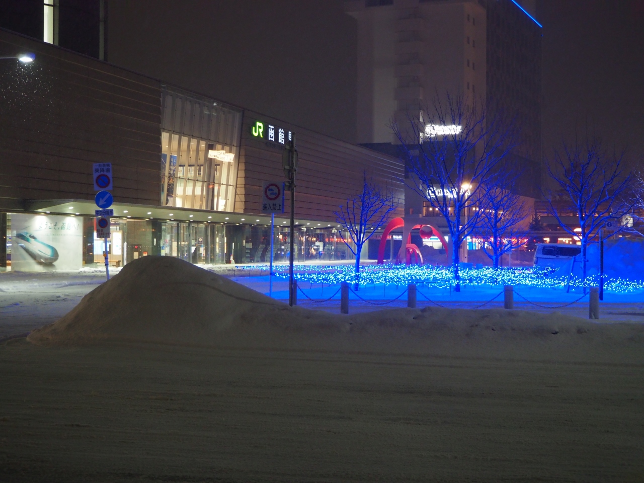 冬季の間、夜になると函館の観光地のあちこちでキレイなイルミネーションを見ることができます。