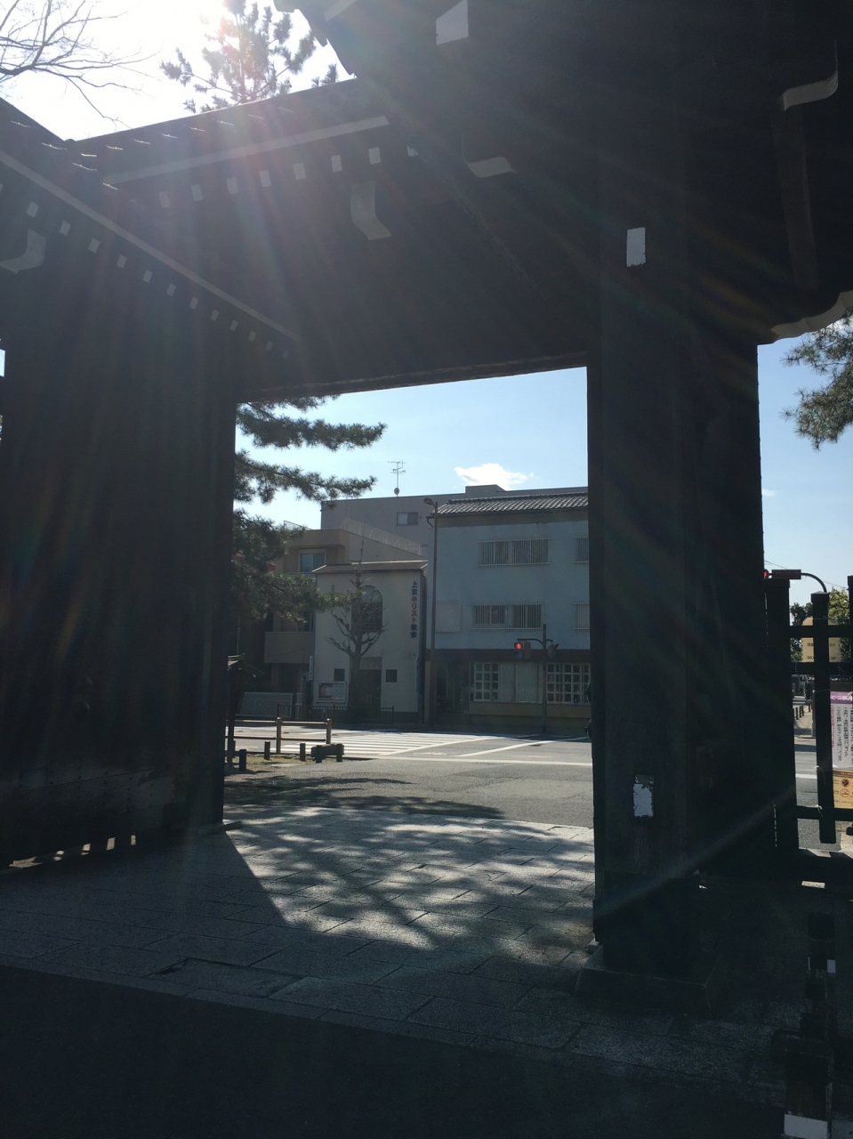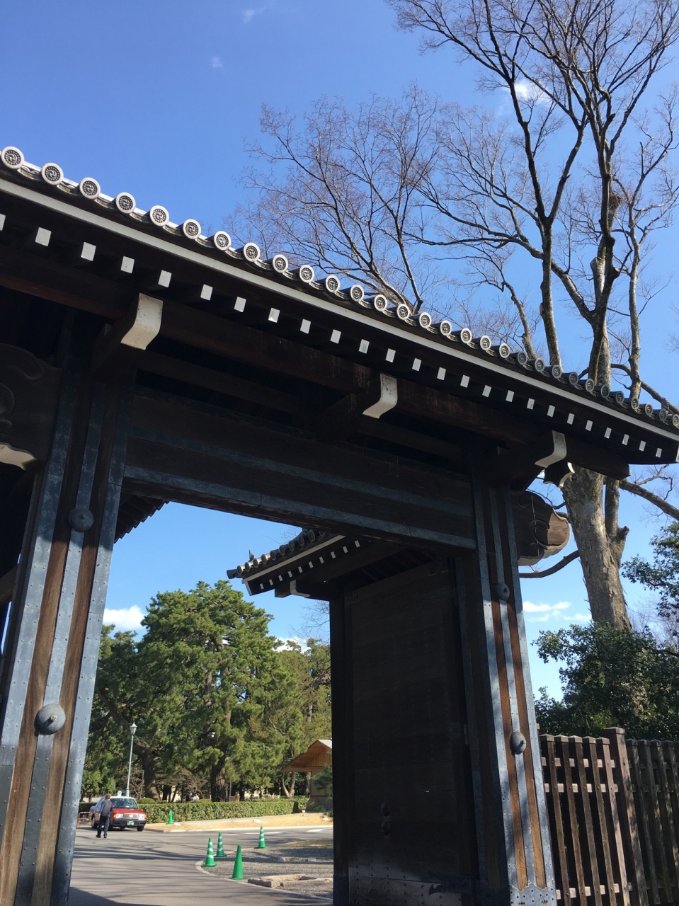 京都御苑を囲む門は9つありますが有名な蛤御門の横にあります。横と言っても暫く歩きますが。京都御所内を見学して一番近い門でした。門の左右横には柵があり御苑内が見えます。瓦屋根の門で門だけポツンと建っている風景でした。