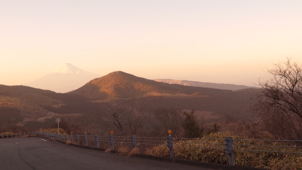西伊豆の黄金崎付近から見上げた高い山へとドライブすると、懐かしい伊豆の雄大な自然に出会えました。連なる山々の美しいアンジュレーションを眺めながら、遠くには駿河湾や富士山も見えます。人もいなくてよかったです。