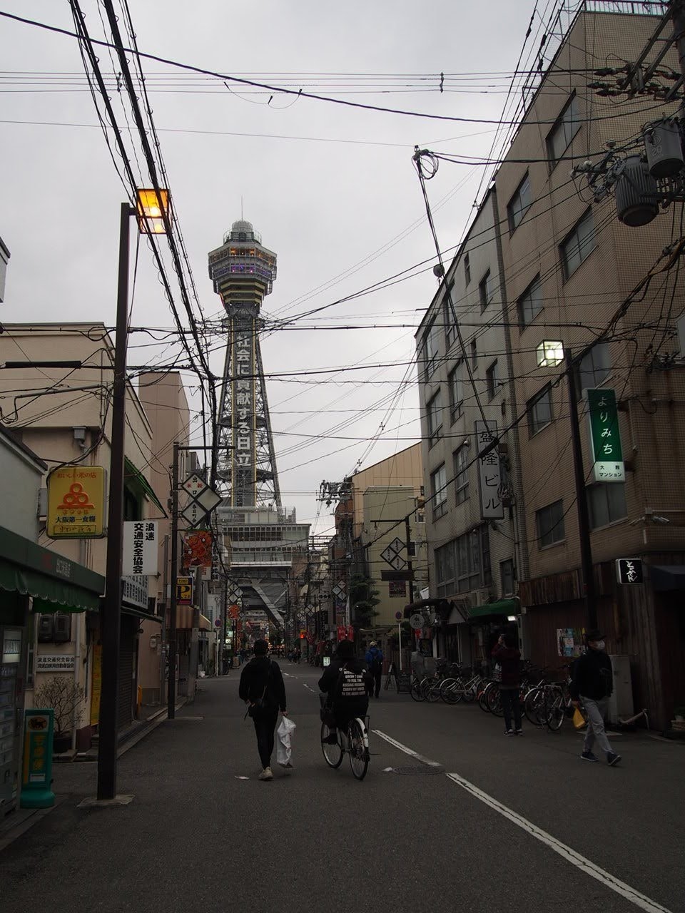 うまく表現できませんが派手な看板がない方面から見る通天閣はいっそう昭和な雰囲気が強いように思います。