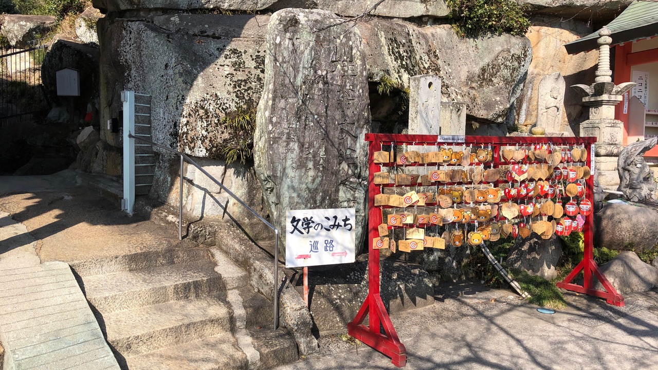 千光寺山にある散歩道です。尾道にゆかりのある25人の文学家たちの作品が、道沿いの石に刻まれています。道の途中には千光寺があるので合わせて参拝したり、山頂の展望台から尾道市街地を眺めたり、いろいろな楽しみ方ができます。