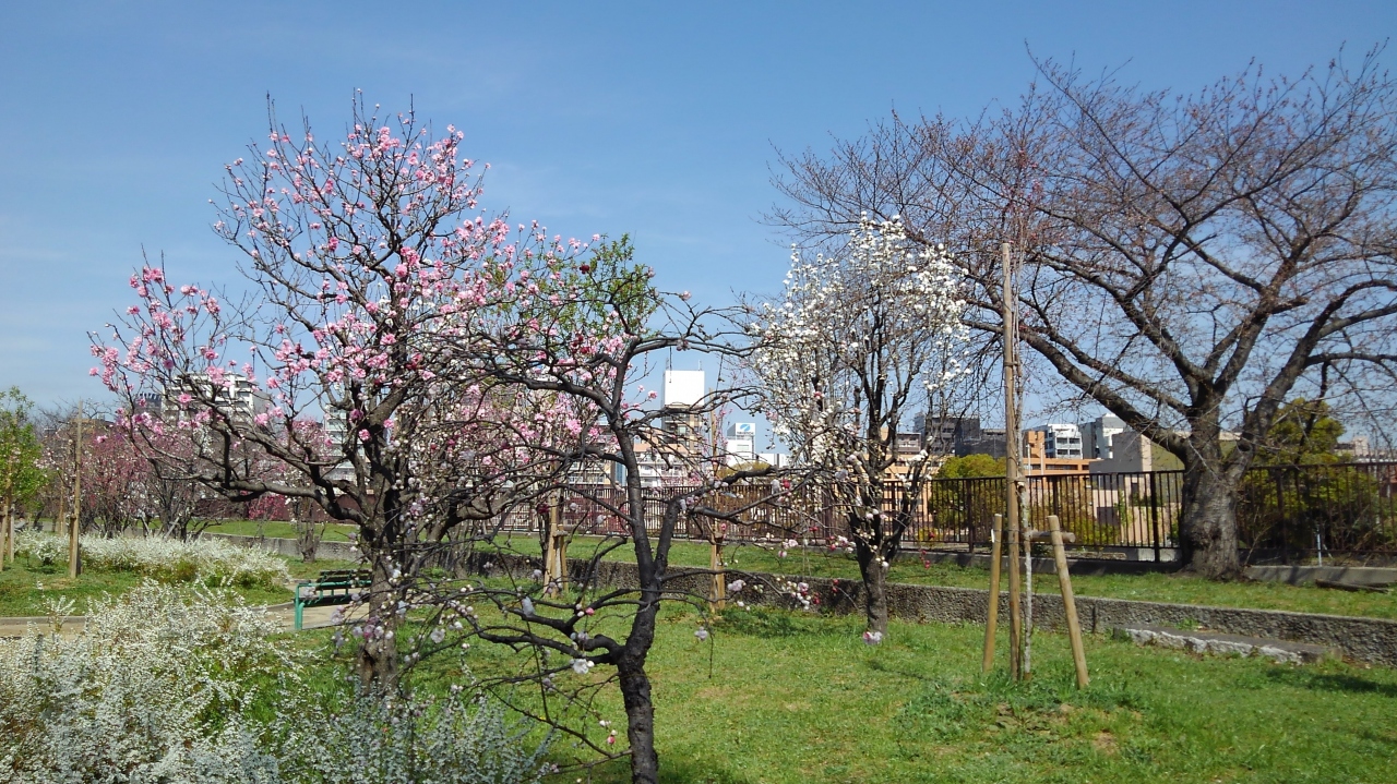 大阪城公園は天守を中心に広い公園となっています。天守閣、西の丸庭園以外が無料で散策できるのがとても素晴らしいと思います。特に梅園が有名ですが、もう咲き終わりとなっており、桜の時期には早かったので、間をつなぐ桃園を楽しみました。