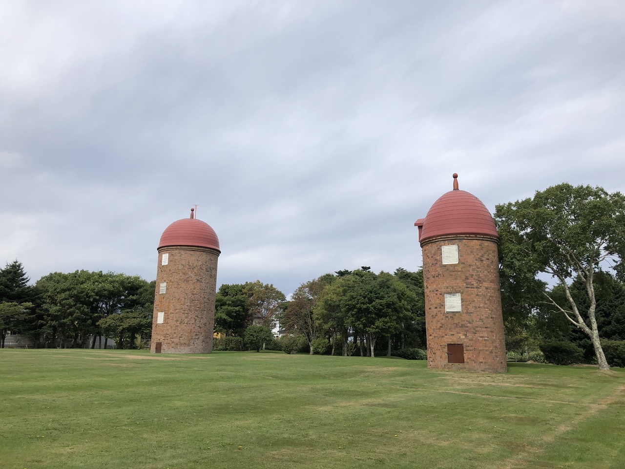 日本最東端の街、北海道根室市にある明治公園です。トイレや駐車場も併設された大きな公園で、敷地内では散歩やランニング等をしている人もいて根室市民の憩いの場所になっています。公園内にはサイロが三つありインスタスポットにもなっています。