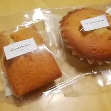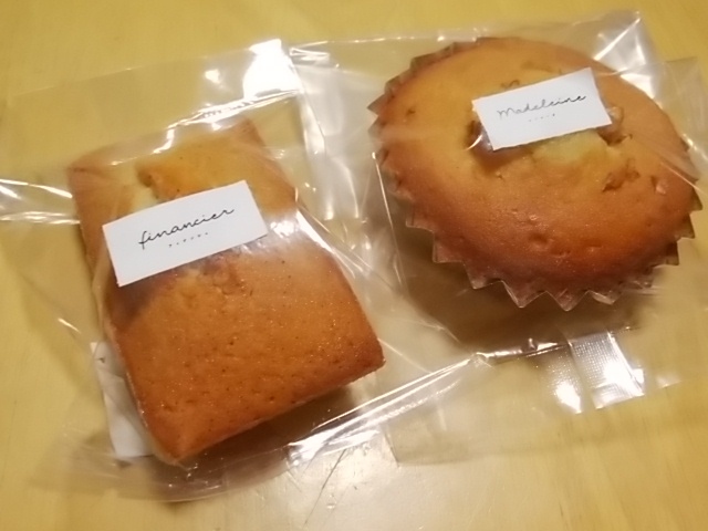 マドレーヌは銀カップに入った、昔ながらっぽい雰囲気を醸し出すヤツ。でも、くるみ乗ってる!マドレーヌしっとり、フィナンシェさっくり。フィナンシェのほうが甘みが少し強かった。
