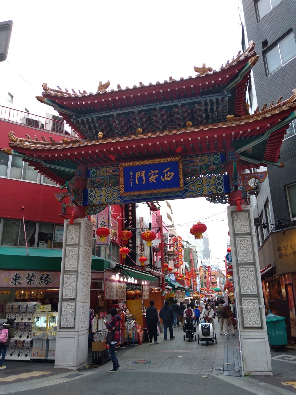 神戸の中華街である南京町の西側にある門です。中国で商業が最も繁栄したという北栄時代の門がモデルになっており、朱色の門が非常に美しいです。人出が凄かったですが、非常に立派な門で中華街らしい感じを醸し出していました。