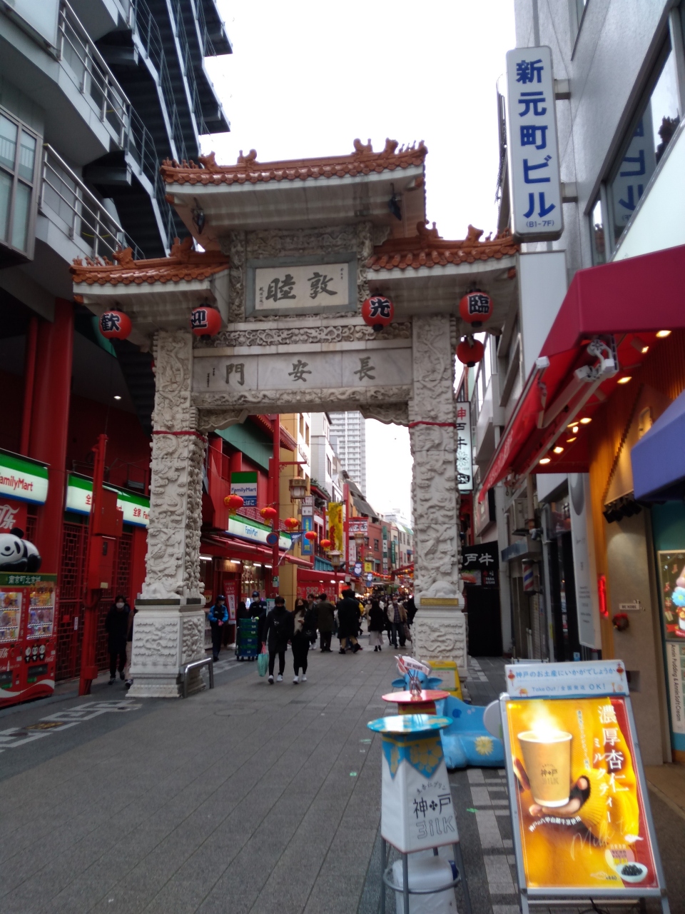 南京町の東側に建つ門です。西側の西安門よりも地味な感じですが、ミルキーホワイト色の大理石でできている門は立派なつくりです。長安門をくぐれば、邪気が払われ運気が上がるということなので、とりあえずくぐってみました!