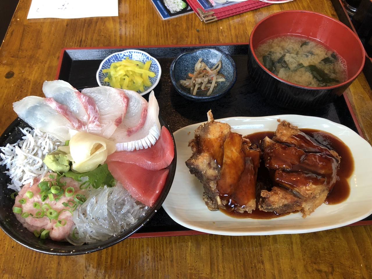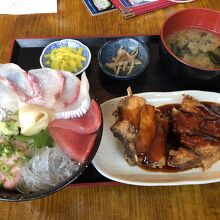 地魚丼、マグロスペアリブ付き(1,200円+外税で1,320円)。