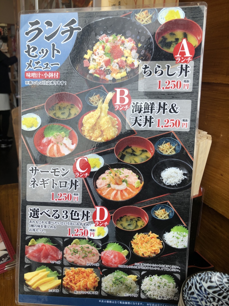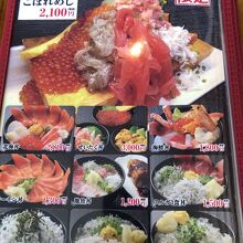 静岡県清水市にある河岸の市、まぐろ館2階にある海鮮丼のお店。