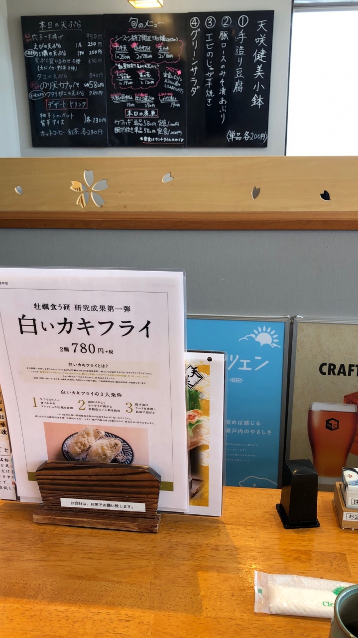 尾道駅ビル2Fにある天ぷら屋です。11~15時のランチタイムに、天咲定食950円を食べました。2回に分けて揚げたての天ぷらが置かれ、おいしくいただけました。定食に付く小鉢が、4種の中から自分で選べるのうれしいです。