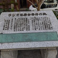JR総武線の高架沿いにある「佐久間公園」にはいくつかの史跡がありますが、そのひとつが「ラジオ体操会発祥の地」の史跡です。ラジオ体操の型をイラストにして並べたレリーフが埋め込まれており、石碑が無機質に陥らないように工夫されているのが良いと思いました。