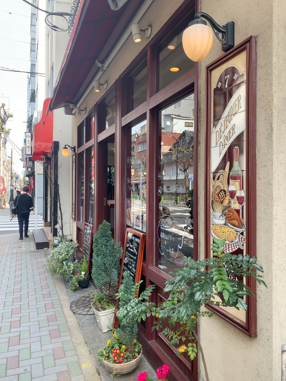 お店の裏道に椅子とテーブルが並び、ちょっとフランスっぽい雰囲気です(目の前がファミマなのは日本ですが)