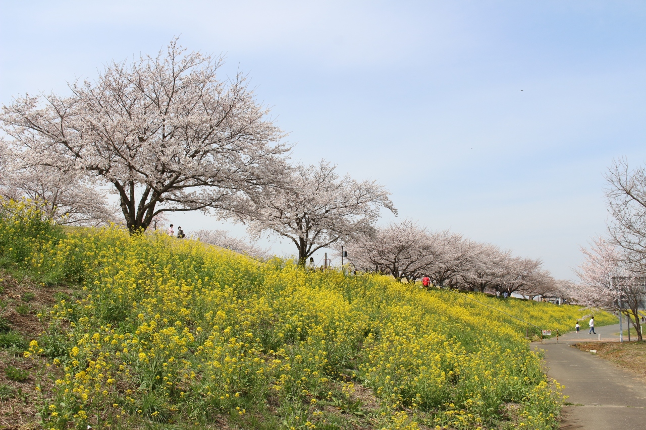 小貝川の河川敷の菜の花がすばらしいと聞いて、小貝大橋近くをウロウロして結局ここに到着しました。公園の周辺には菜の花だけでなく桜もあって菜の花と桜のコラボが楽しめました。ただ、菜の花はバラつきがあって、有名なポピーほどは整備されていないようでした。