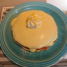リリコイパンケーキのソースは酸味がもっとあるのかと思っていましたが、ほんのりした酸味で甘さもちょうどよく飽きずにいくらでも食べられます。パンケーキ自体にも甘みがありました。