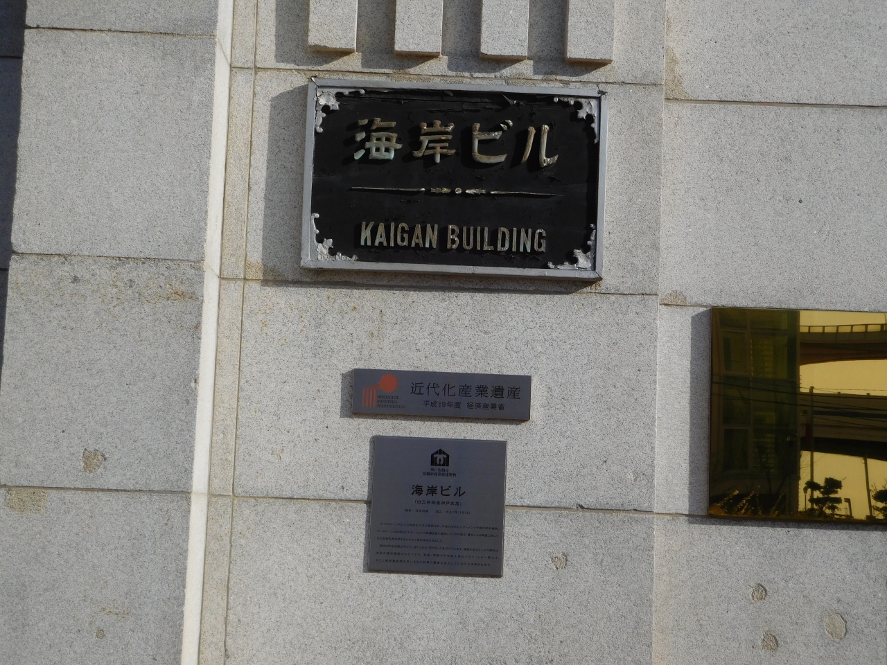 神戸旧居留地「海岸通」沿いにある「海岸ビル」は、1918年に「旧三井物産 神戸支店」として建てられたビルです。阪神淡路大震災後に解体と再建されていますが、御影石が貼られた外壁がとても趣があり、レトロな雰囲気がありました。近代化産業遺産のプレートが貼られ、その後ろには現代のビルがそびえていました。