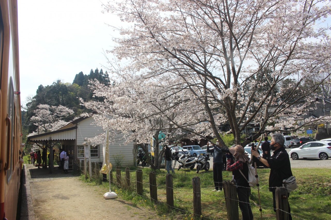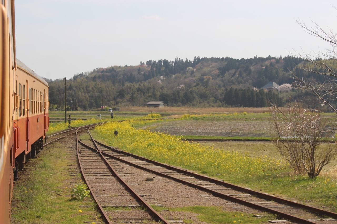 久しぶりに列車に乗りました。3月27日は桜満開、菜の花とのコラボを車窓から見ました。