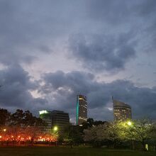 ライトアップされた建物をバッグに桜は満開でとても綺麗でした。