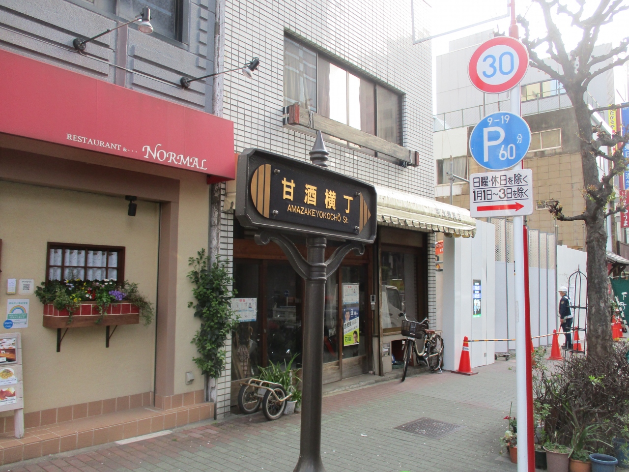天気の良い土曜日の午後、浜町緑道公園の方に行く用事があり、久しぶりにこちらの通りを歩きました。浜町緑道公園は桜が満開で人が多かったですが、こちらの甘酒横丁は予想に反してそれほど人通りは多くなかったので歩きやすかったです。