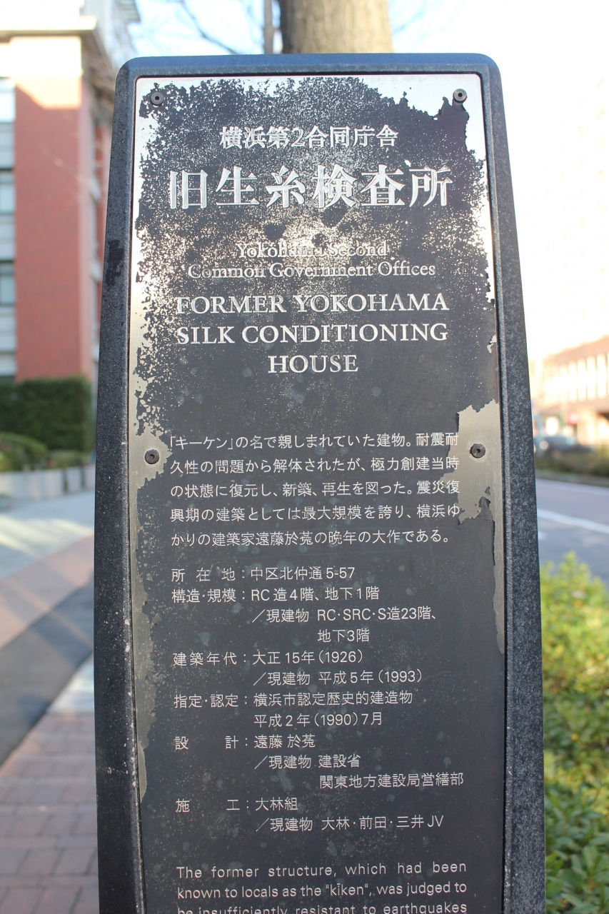 馬車道から続く万国橋通り沿いにある建物で、輸出用の生糸の検査場として大正期に建てられたレンガ造りの建物です。