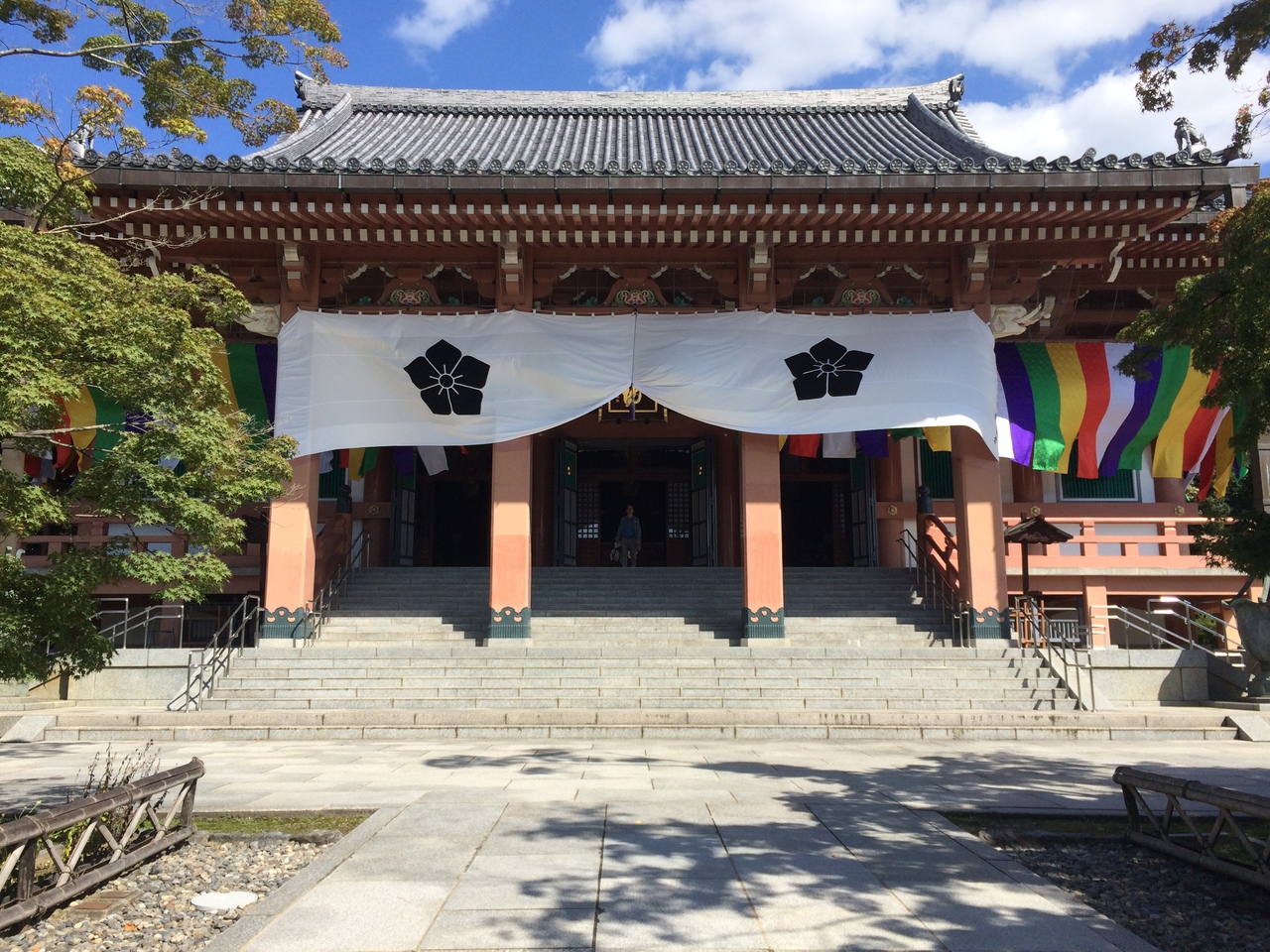 智積院金堂は、真言宗智山派の総本山の中心的な建物です。宗祖弘法大師の生誕1200年の記念事業として1975年(昭和50年)の再建された鉄筋コンクリート造、入母屋造、瓦葺の大きな建物です。御本尊は、大日如来です。毎朝の御勤行、総本山としての多くの法要はここで厳修されるとのことです。神社仏閣に興味がある方は参拝されては如何でしょうか。
