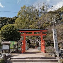 国道1号線から少し入ったところに鳥居があったのでそこから登ってみましたが、道は荒れ放題でどうも様子がおかしい。“裏口”でした。正面入口は裏口の鳥居から向かって左手道なりに約400m先です。ちゃんと駐車場もあります。