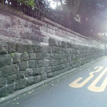 外の石垣は松山藩邸の名残か