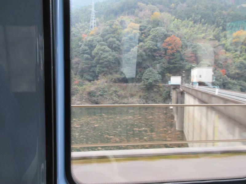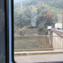 別子銅山マイントピアを見学していて、端出場ゾーンから東平ゾーンへバスで向かう途中にありました。ガイドさんが説明してくれました。別子ダムを造るためにできた人造湖とのことでした。鹿森という地名で、鹿をデザインした模様が湖の柵についていました。