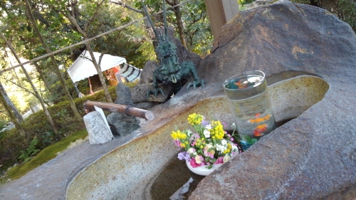 平日に行ったため空いていました。手水鉢には、お花が飾られていました、インスタ映え狙いなのかもしれません。コロナ対策が、なされていました。お賽銭もも現金だけではなく、非接触型・paypay au payでの対応も可能、とのことでした。