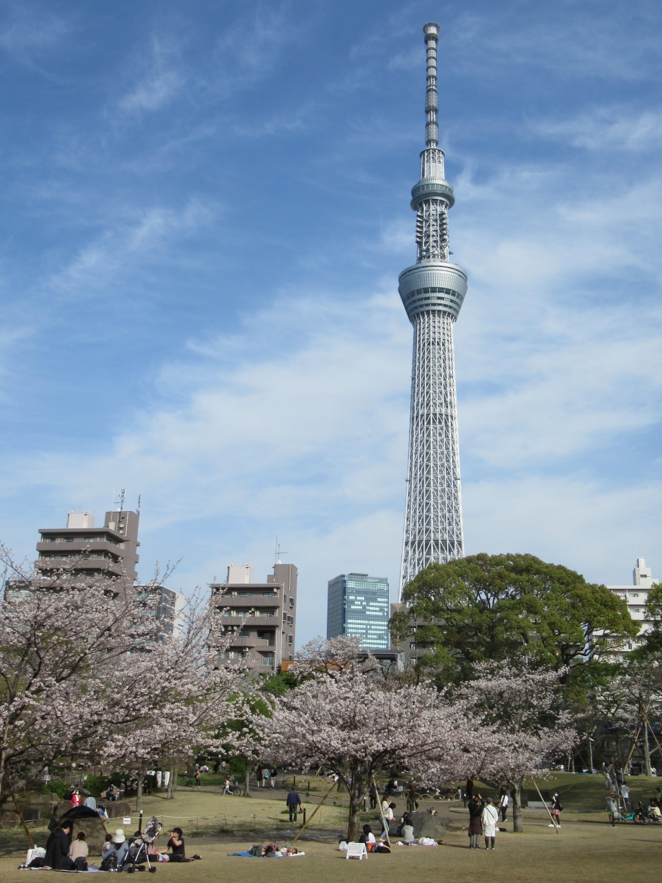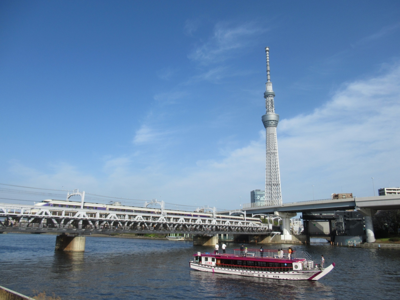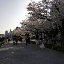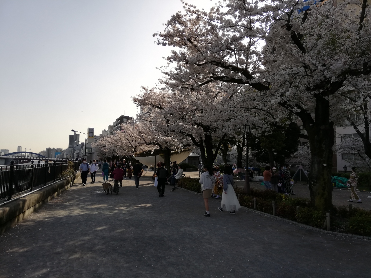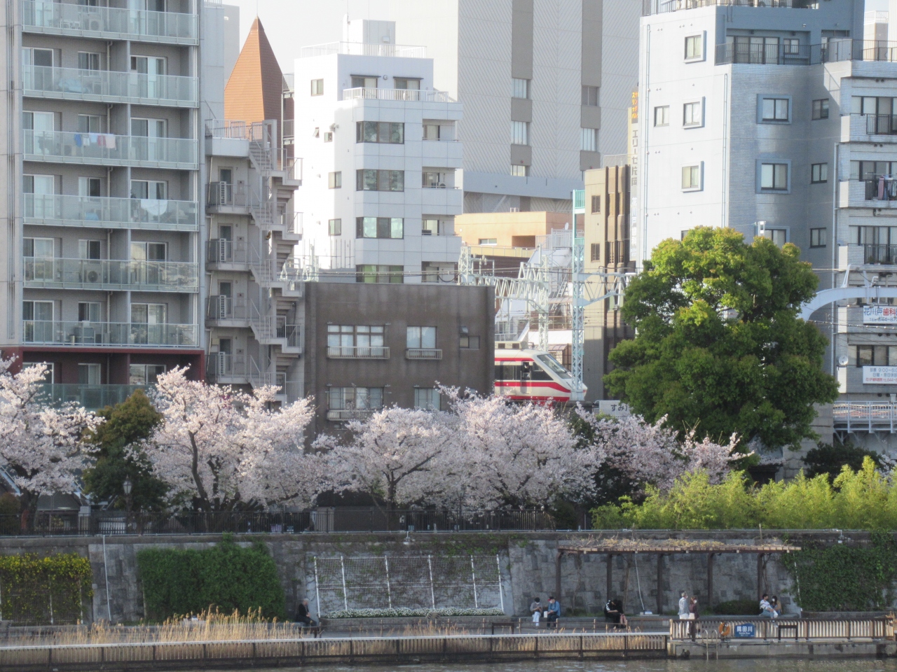 桜の時期は荒川区の都立汐入公園から隅田川に沿って桜並木が続いて行きます。