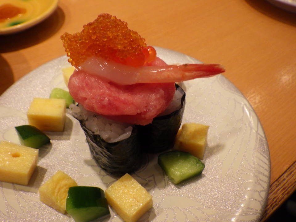函館に入り、「グルメ回転寿司 函太郎 宇賀浦本店」で夕食をいただきました。有名店なので期待していたのですが、北海道の魚はほとんどなく、鯛とハマチくらいしか食べたいものがなく残念でした。仕方なく、イカや珍味の軍艦を食べて、「海宝こぼれ巻き」なるものを頼んでみましたが、かなり残念なものが出てきてがっかりでした。