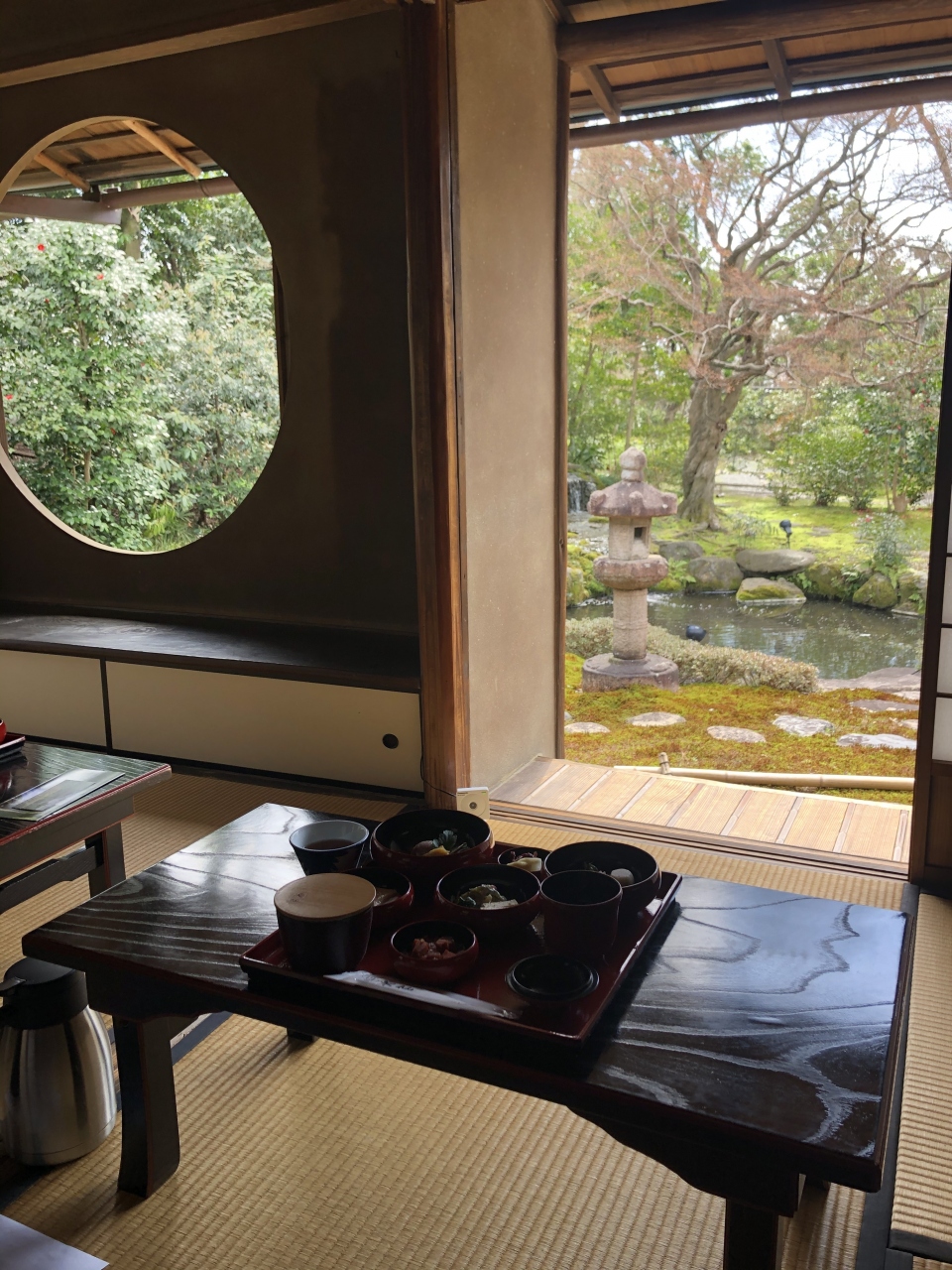 旧三井家下鴨別邸の風情ある庭園に面した茶室でスペシャルランチを楽しむ