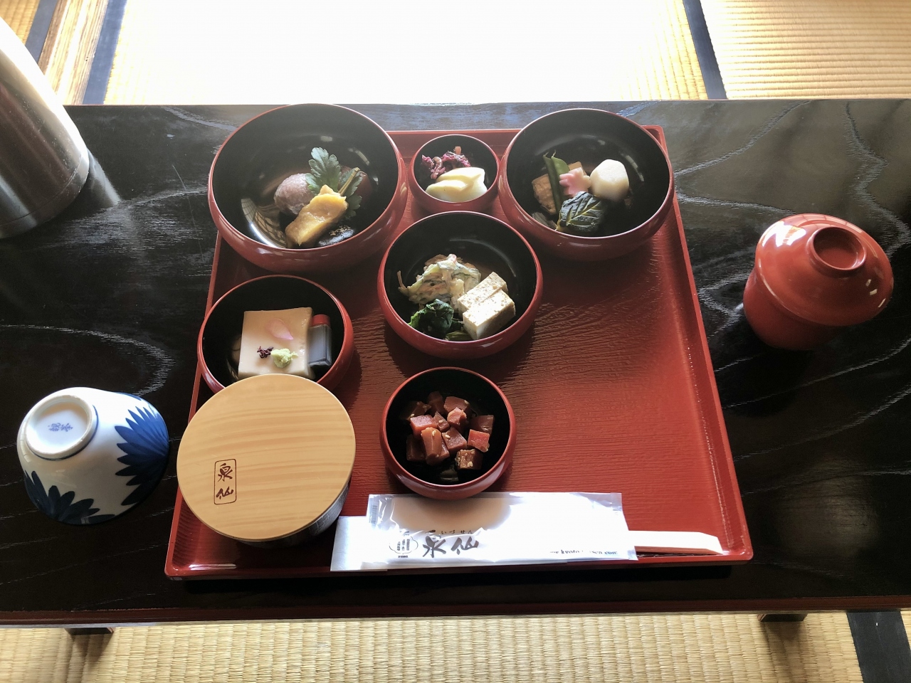 この日「春のランチプラン」を選択、ここ下鴨別邸で本格的な茶懐石「三友居」の仕出し弁当をいただいた。また通常は非公開の三階望楼にも案内つきで入室。大文字山や比叡山を望めることができた。コストパフォーマンスが高い、とは言えないが、風情ある庭園に面した茶室を楽しんだ。