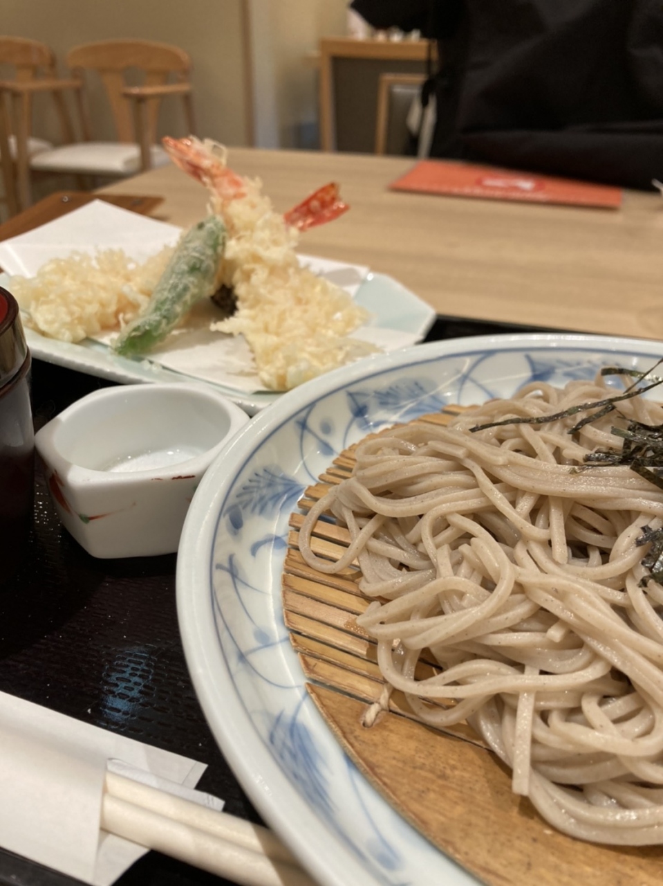 天ざるのセットをいただきました。お味はふつう。お蕎麦も天ぷらもおいしくいただきました。通常お酒も頼むのですが、二日酔いだったこともありお水だけで。グラスにお水が残り少なくなった時、お冷を注ぎに回ってくれたスタッフさんの気遣いがとてもうれしかったです。レジ横に携帯用のアルコールスプレーが売ってましたのでお会計の時一緒に購入。そちらも使いやすくておすすめです。