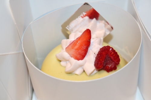 大丸の地下1階にあります。いつも混雑しています。カフェも併設されていますが、ビスタチオムースを買ってみました。ホテルがすぐ近くでしたので保冷剤なしで、包装してもらいました。中にはベリーが入っており甘みと酸味のバランスでおいしくいただきました。
