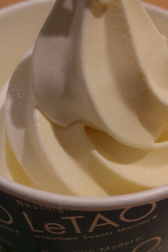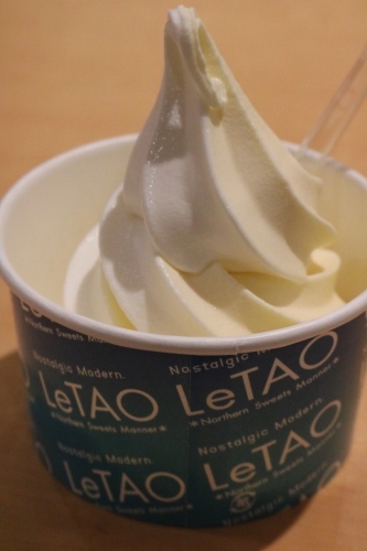 ソフトクリームをいただきました。クレームグラッセマリアージュという名前のもので、チーズとミルクです。コーンではなくカップでいただきました。すぐ近くにテーブル席がありますのでちらで食べられます。濃厚な味でおいしいです。